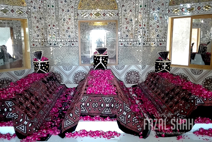 These are latest view of inner side of Darbar Hozur Fazal Shah Sarkar Chishti Nizami Okara. In Center Sarkar Syed Fazal Shah, in left Sarkar Muawar Hussain Shah, in right Sarkar Iqbal Hussain Shah.